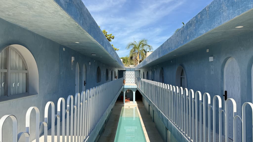 A solo cuadras de Casa Amate 61 (pero sintiéndose como un espacio totalmente diferente) está Casa Amate 62, que apuesta por un impacto visual más juvenil; con sus colores azules y su diseño que nos transportó un poco a aquellos hoteles de Acapulco en los 1980. Si optas por este lugar, ve al rooftop al atardecer para descansar en su alberca o a su solarium al amanecer para hacer un poco de yoga. Disfruta su carril de nado coronado con dos jacuzzis, uno de cada lado.
