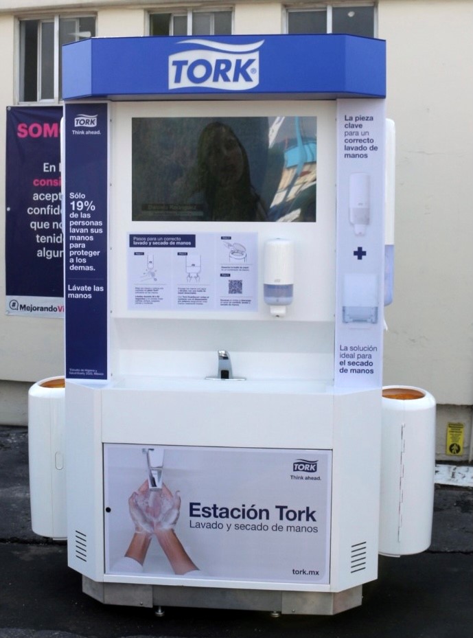 En respuesta a ello, Tork®, en alianza con la start-up mexicana Biobox, desarrolló la Estación de Lavado de Manos que podemos usar en el Metrobús Insurgentes, una solución